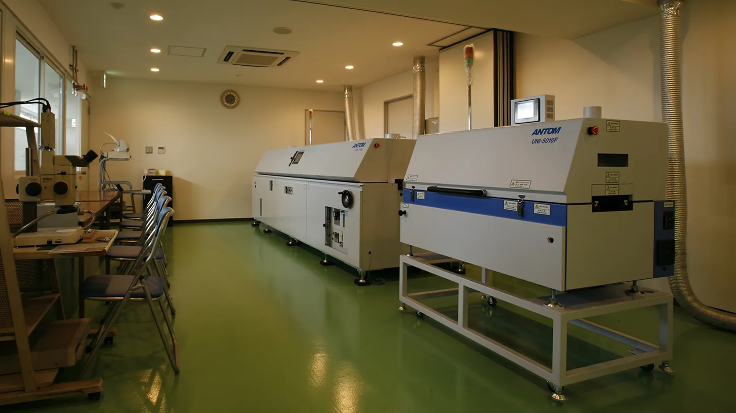 アントムでは、小型リフロー炉を実際にご確認いただけるデモルームを完備しております。お客様の目的に応じて、実機検証またはレンタルラボとしてご利用いただけます。